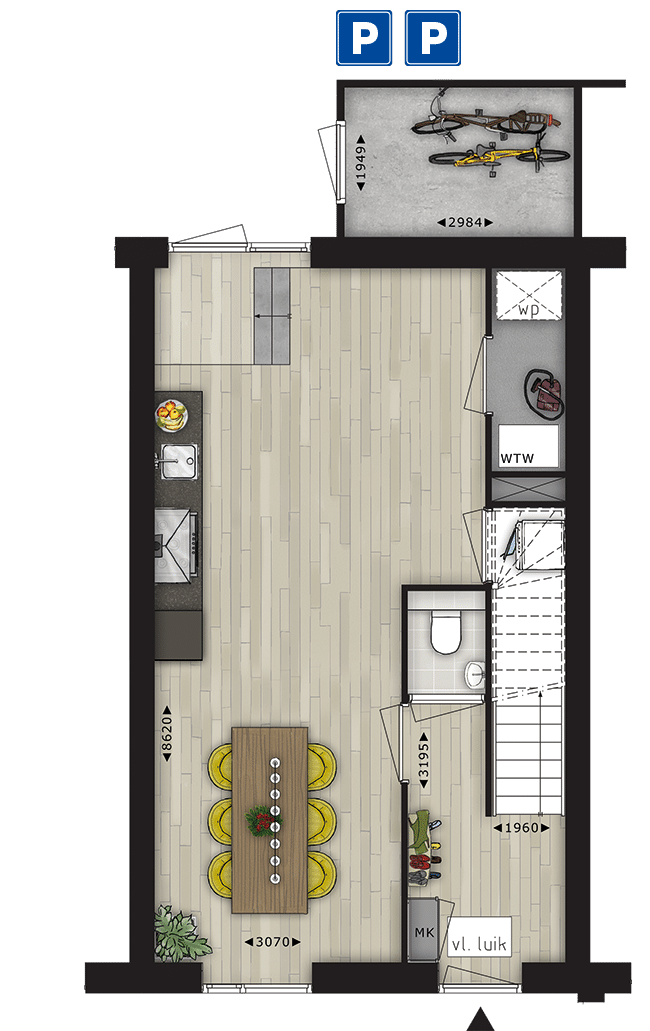 - 2 parkeerplaatsen
