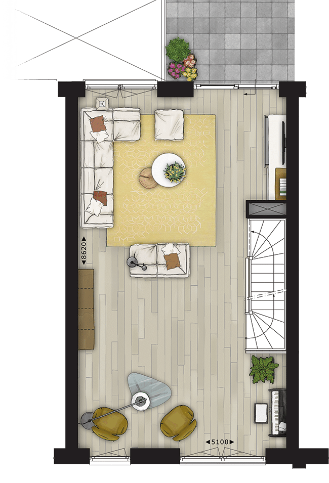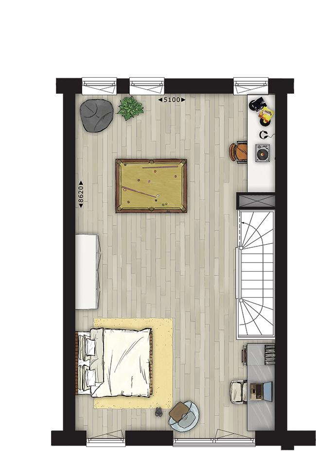 Breedte woning: 5.10 m