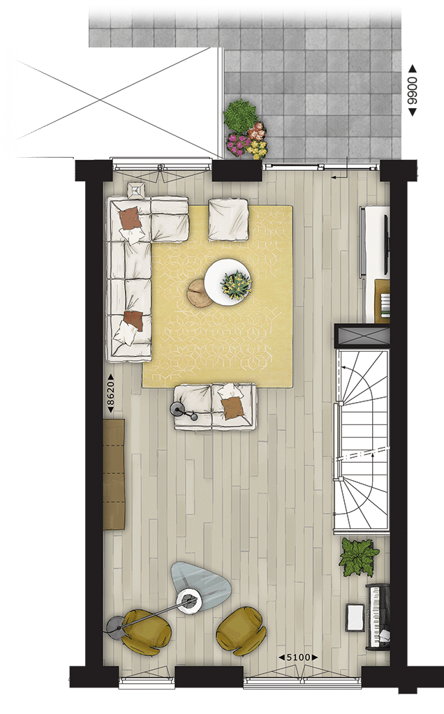 Diepte woning: 8.62 m